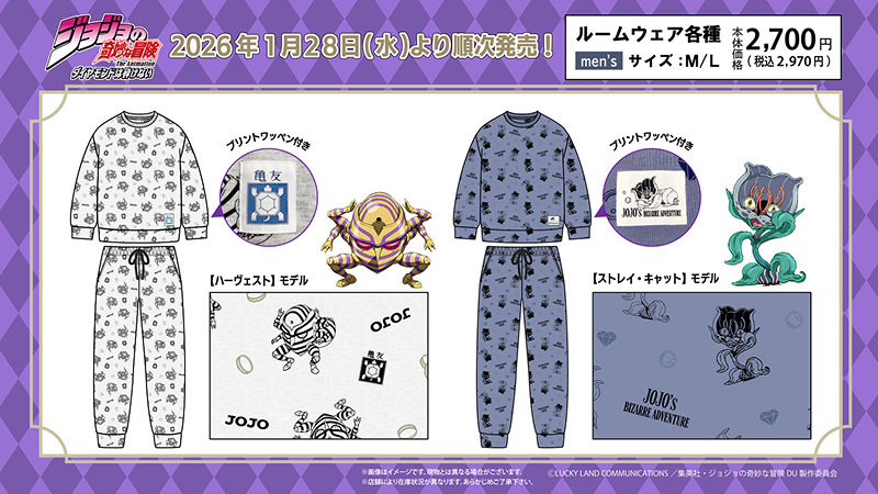 アニメ『ジョジョの奇妙な冒険 ダイヤモンドは砕けない』のルームウェアが発売決定!