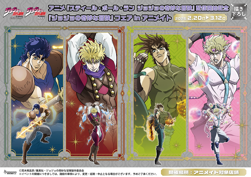 アニメ『スティール・ボール・ラン ジョジョの奇妙な冒険』配信開始記念としてアニメイトフェアを開催!